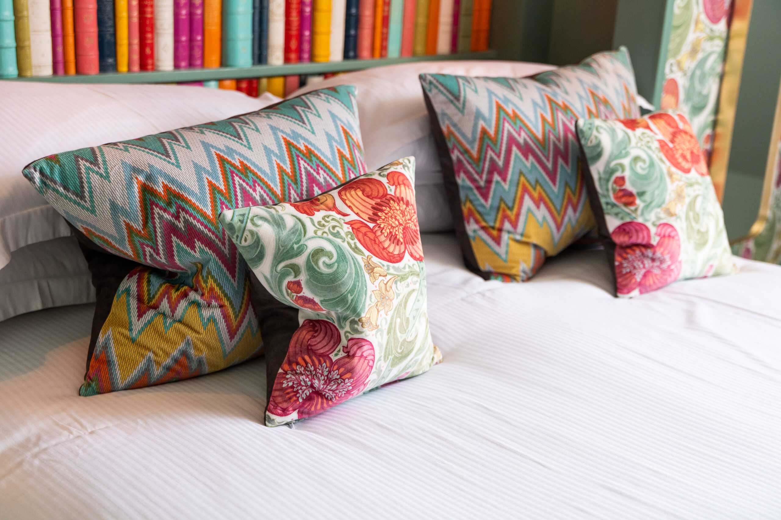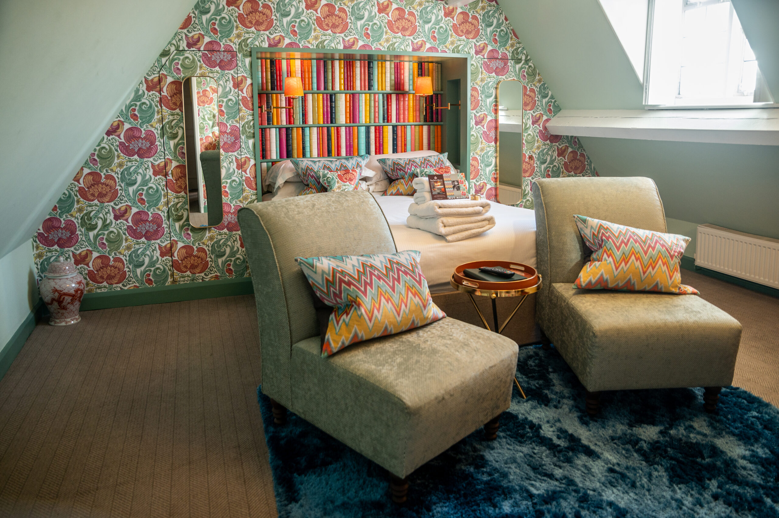 The Dial House, a luxury boutique hotel in the Cotswolds contacted us to help with two of their five signature rooms designed by Laurence Llewelyn-Bowen. Our Technicolour spines were used for a statement headboard in a room inspired by 19th Century designer May Morris, achieving an effect that has become an iconic feature of this property.